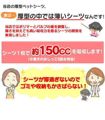 当店オリジナルの『厚型』ペットシーツ! 厚型だから、留守にすることが多いご家庭や多頭飼いのご家庭におすすめ♪